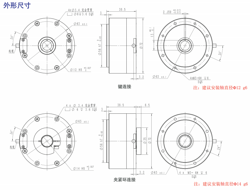 ●轉(zhuǎn)軸形式:同心軸通孔,夾緊環(huán)/鍵兩種連接形式(二選一)。