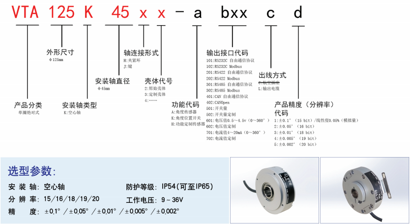 :VTA125K45 單圈 空心 機械絕對式 角度傳感器