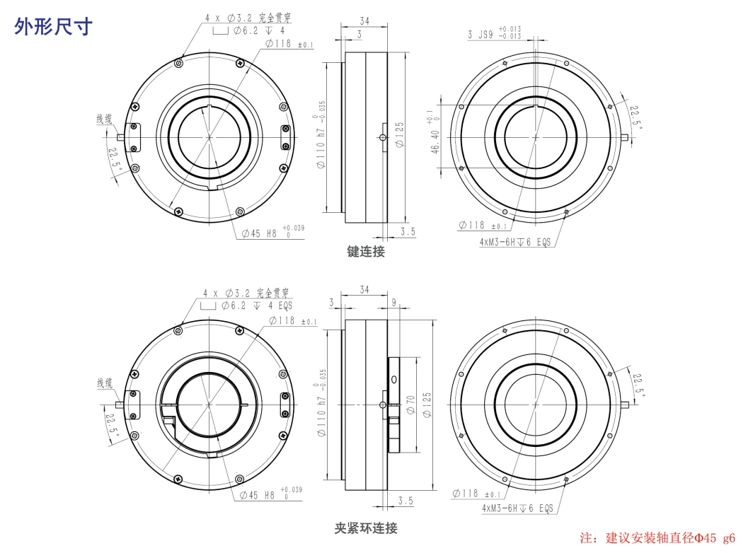 :外徑125mm、內徑45mm,夾緊環 /鍵連接方式 高精度角度傳感器、空心角位移開關,檢測范圍0~360°,最高精度可達0.002°,分辨率20bit,多輸出可選