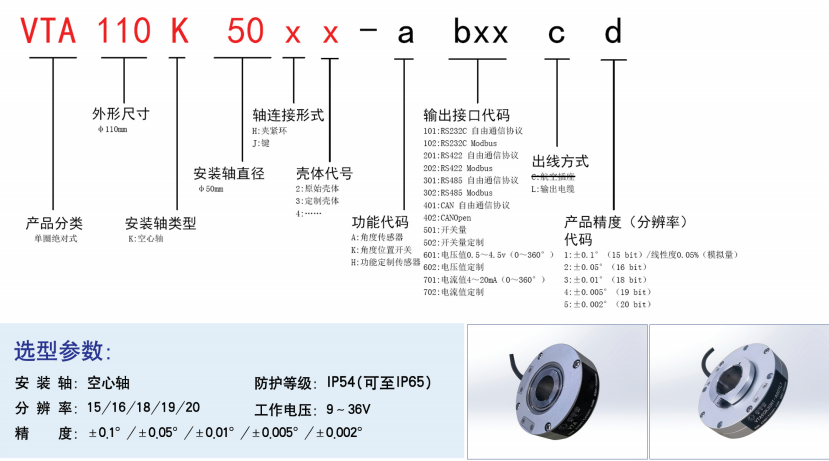 :VTA110K50 單圈 空心 機械絕對式 角度傳感器