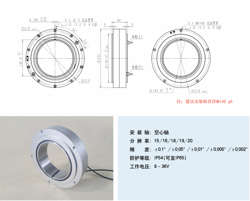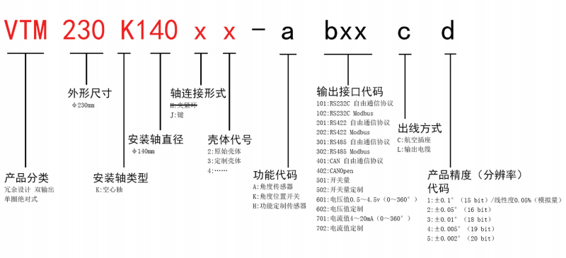 VTM230K140 單圈 冗余雙輸出 空心 機(jī)械絕對式 角度傳感器