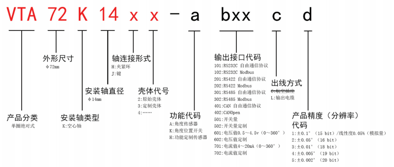VTA72K14空心角度傳感器是一種一體化、中空式、高精度、磁絕對角度傳感器,采用維特森科技“磁-角度檢測” 、“磁干擾屏蔽”及“本體加固”技術設 計。每個產品出廠都擁有獨一無二的磁場標定數據,即使在振動、沖擊、油污等惡劣的環境下也可實現對0~360°范圍絕對角度位移數值的高可靠性測量。