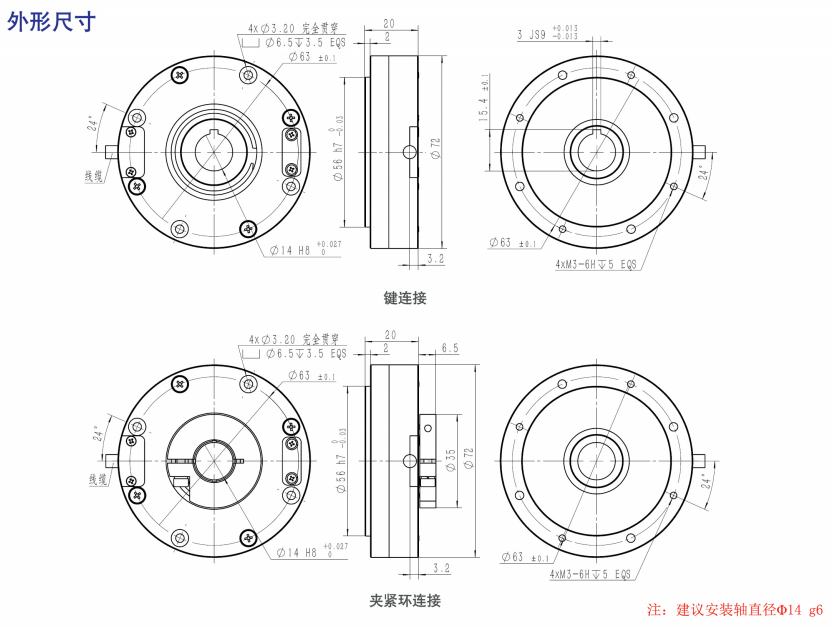 ● 轉軸形式:同心軸通孔,夾緊環/鍵連接形式(二選一)。
